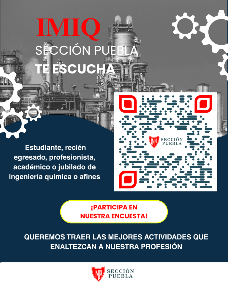 En el IMIQ Sección Puebla queremos seguir creciendo junto con nuestra comunidad. Por ello, ponemos a tu disposición esta encuesta, cuyo objetivo es escuchar tus ideas, comentarios y sugerencias con el fin de mejorar y enriquecer las actividades que realizamos.